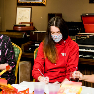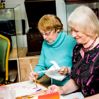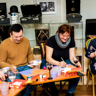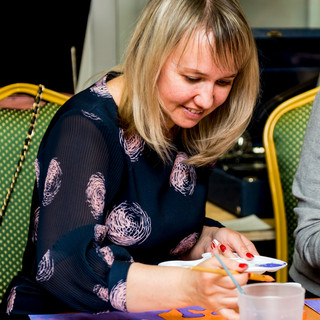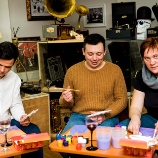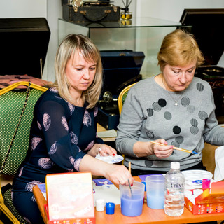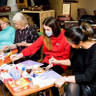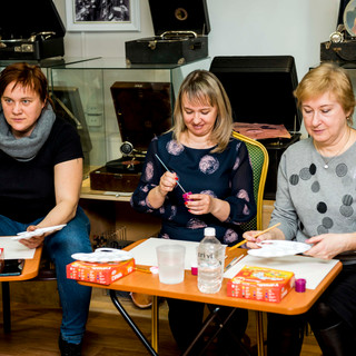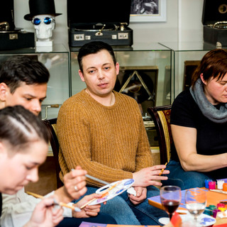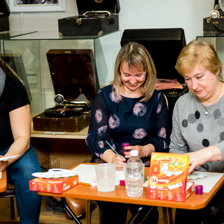 14 февраля 2021г. в Музее "Мир говорящих машин" прошёл Арт-вечер, на котором гости смогли создать собственные произведения по мотивам картины «Сотворение мира», которую Чюрленис посвятил своей жене и музе Софии Кимантайте.